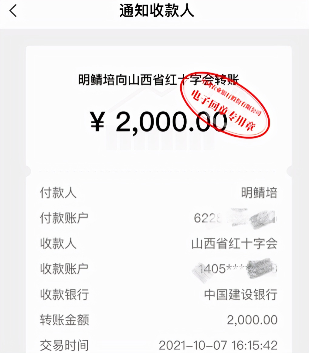 百萬(wàn)粉網(wǎng)紅明鯖培也為山西獻(xiàn)出了綿薄之力,捐款2000元。