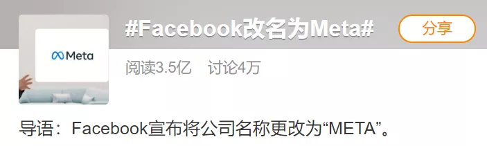 點(diǎn)評(píng):雖然改名改得很突然,新logo還透著一股子微信+華為味兒,但Facebook這波動(dòng)作其實(shí)有著戰(zhàn)略層面的考量。新名字“Meta”取自“Meta Platforms”(“元平臺(tái)”)的前綴,而這也意味Facebook在改名后,將積極發(fā)展元宇宙相關(guān)業(yè)務(wù),致力打造一個(gè)超越現(xiàn)實(shí)、虛實(shí)相融的互聯(lián)網(wǎng)平臺(tái)。