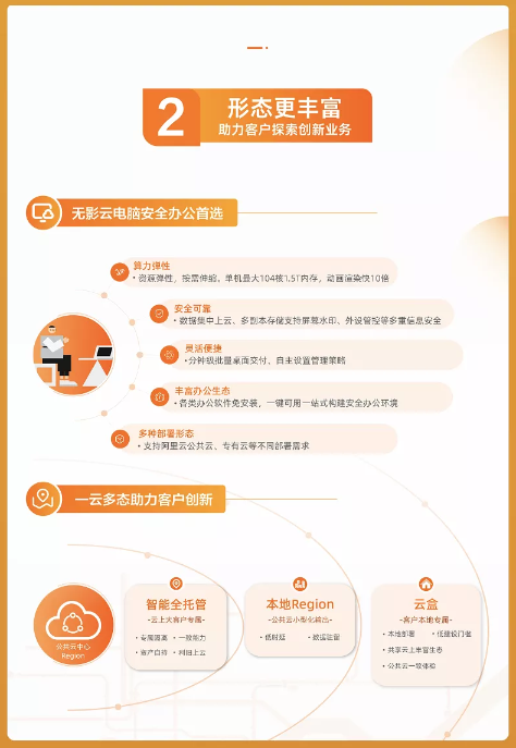 總結(jié)來說,從覆蓋全場景的公共云實例、無影云電腦新產(chǎn)品形態(tài)和本地Region/云盒等部署形態(tài),再到計算巢生態(tài)平臺,阿里云圍繞核心的自研神龍架構(gòu),向下做好底層技術(shù)創(chuàng)新,向上集成好生態(tài)合作伙伴服務(wù),共同助力客戶創(chuàng)新。