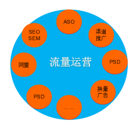 流量的運(yùn)營(yíng)工作相對(duì)于上面4個(gè)模塊是互聯(lián)網(wǎng)中商務(wù)色彩最重的一個(gè)運(yùn)營(yíng)模塊,前些年沒(méi)有重視列為運(yùn)營(yíng)工作范疇。隨著移動(dòng)端的爆發(fā)和應(yīng)用數(shù)量的劇增,以及千萬(wàn)應(yīng)用在收獲第一波用戶(hù),導(dǎo)致線(xiàn)上紅利的消失。流量的運(yùn)營(yíng)工作越發(fā)重要,主要是新流量的引入和現(xiàn)有流量的變現(xiàn),既要低成本的獲取不同形式的流量又要把現(xiàn)有流量?jī)r(jià)值最大化。