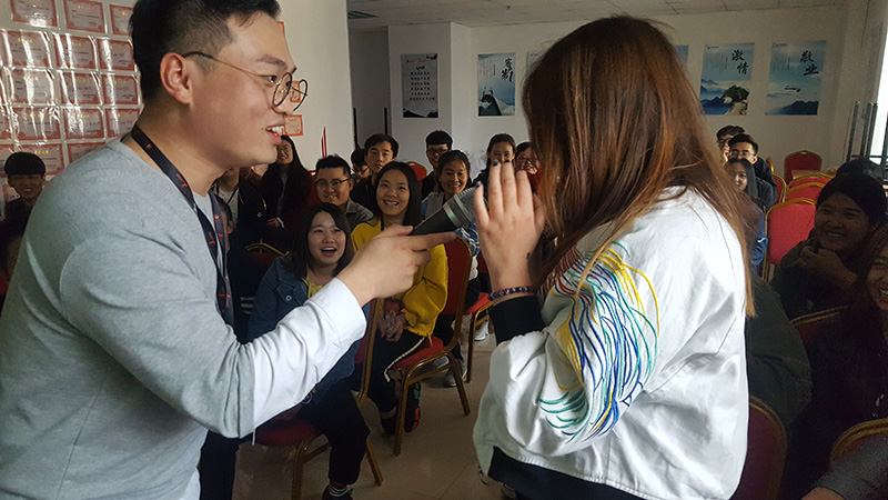 在“猜猜他是誰(shuí)”環(huán)節(jié)中,有時(shí)下大熱的超級(jí)IP小豬佩奇,有游戲里出名的人物,更有公司里大家都非常熟悉的同事,過(guò)程中猜測(cè)者的描述時(shí)常讓大家忍俊不禁。