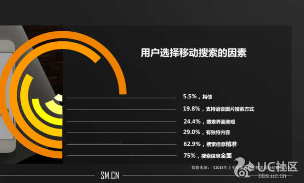 第三個在變化的線是相關(guān)性。傳統(tǒng)搜索的相關(guān)性是基于文本關(guān)鍵詞的,但在移動搜索上,一定會從一致性搜索逐漸向個性化搜索過渡,會按照用戶的特點展現(xiàn)不同的搜索結(jié)果。而且,這種個性化搜索結(jié)果并不是唯一的,每一個廠商都可以根據(jù)自己本身的優(yōu)勢出發(fā)(比如騰訊掌握了人們的社交關(guān)系鏈)做移動搜索。
