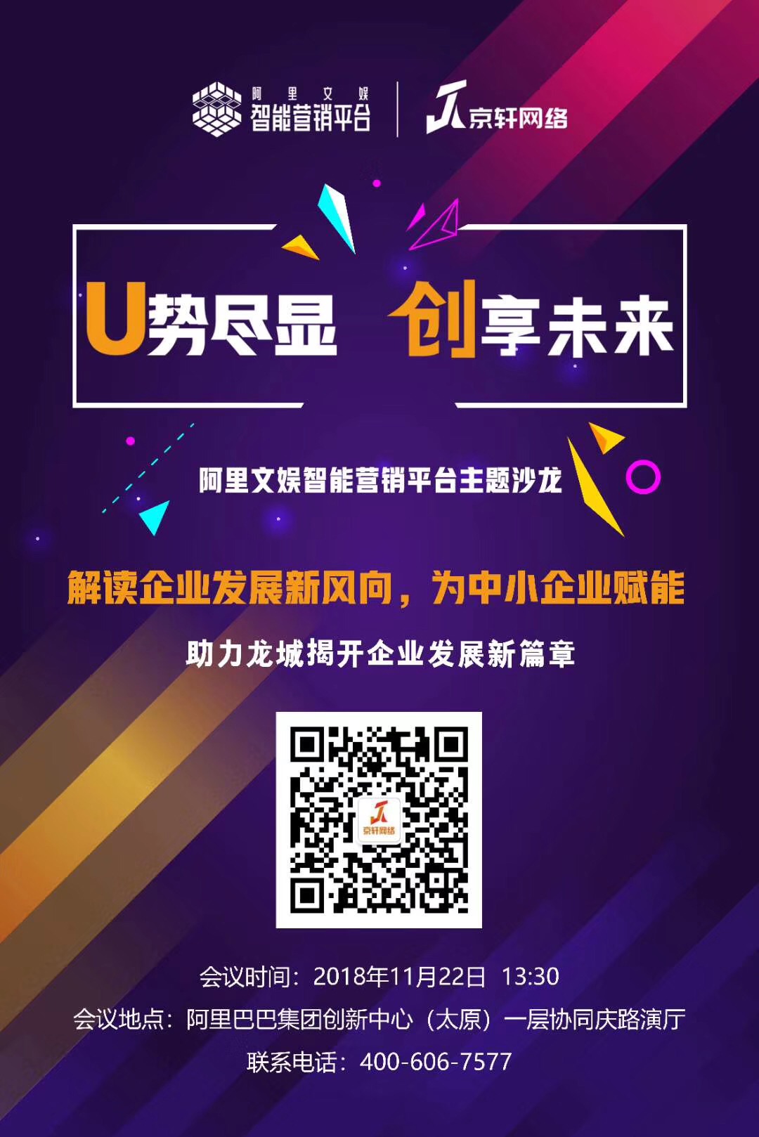 11月22日,阿里文娛智能營(yíng)銷平臺(tái)與阿里巴巴集團(tuán)創(chuàng)新中心(太原)攜手舉辦“U勢(shì)盡顯 創(chuàng)享未來(lái)”主題沙龍會(huì)議,誠(chéng)摯邀約山西中小企業(yè)主參會(huì)共商企業(yè)新發(fā)展,新創(chuàng)新。山西京軒網(wǎng)絡(luò)科技有限公司作為阿里文娛智能營(yíng)銷平臺(tái)山西省核心代理商,將會(huì)把本次會(huì)議智能、創(chuàng)新的思維全面落實(shí)在京軒網(wǎng)絡(luò)合作伙伴的企業(yè)、店鋪中,將智能營(yíng)銷始終貫穿于合作伙伴的發(fā)展之路,助力中小企業(yè)共同發(fā)展。