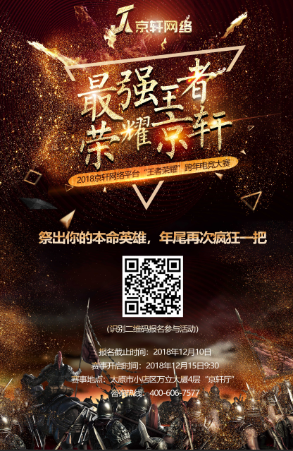 “王者榮耀”跨年電競大賽是一項通過民意征集、眾人籌謀的活動,同時京軒網(wǎng)絡(luò)市場部作為活動的主要執(zhí)行,山西京軒網(wǎng)絡(luò)科技有限公司作為活動主辦方。本次活動將會秉持公平、公正的原則,把快樂傳遞給每一位參賽者。
