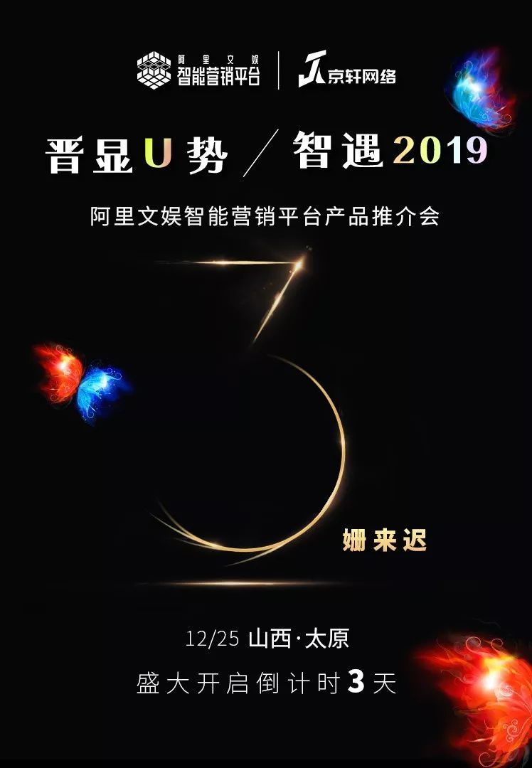 12月25日,由阿里文娛智能營銷平臺(tái)主辦的“晉顯U勢(shì)·智遇2019”產(chǎn)品推介會(huì)將在山西·太原隆重召開,與我們共同分享智能社會(huì)發(fā)展機(jī)遇,全面解析智能營銷新時(shí)代!