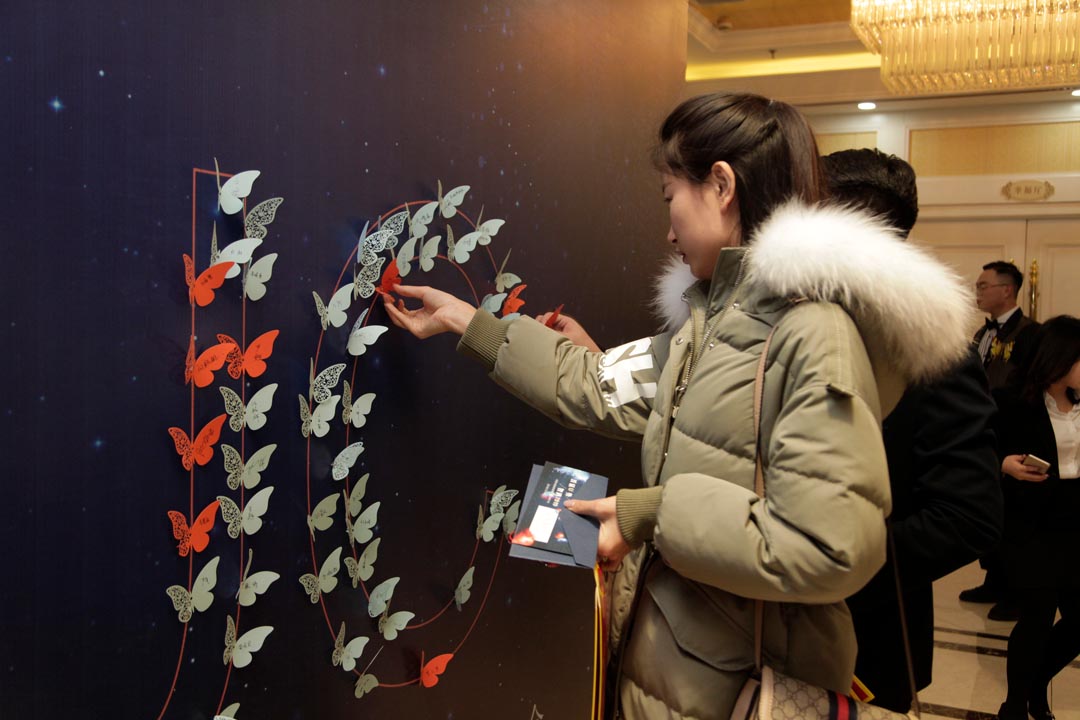 出席本次盛典的嘉賓陸續(xù)到場,我們?yōu)槊恳晃患胰藴?zhǔn)備了一份精美的禮品,同時大家將自己的名字寫在小蝴蝶上并貼在UC上面,愿2019與UC一起飛揚(yáng)。