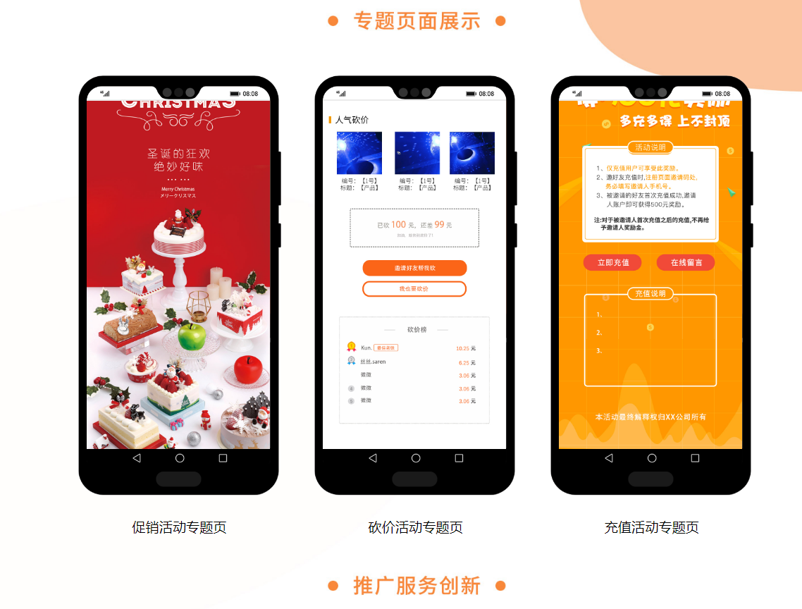 二、線上專題頁(yè)通過(guò)獨(dú)具特色的頁(yè)面風(fēng)格、強(qiáng)力的畫面沖擊感深層次對(duì)用戶進(jìn)行視覺(jué)營(yíng)銷,表現(xiàn)出超強(qiáng)的優(yōu)惠力度,同時(shí)整體別致的畫面風(fēng)格將會(huì)抓住用戶眼球,讓用戶在頁(yè)面上停留時(shí)間更長(zhǎng),對(duì)活動(dòng)了解更詳細(xì),成單機(jī)會(huì)大大提升。
