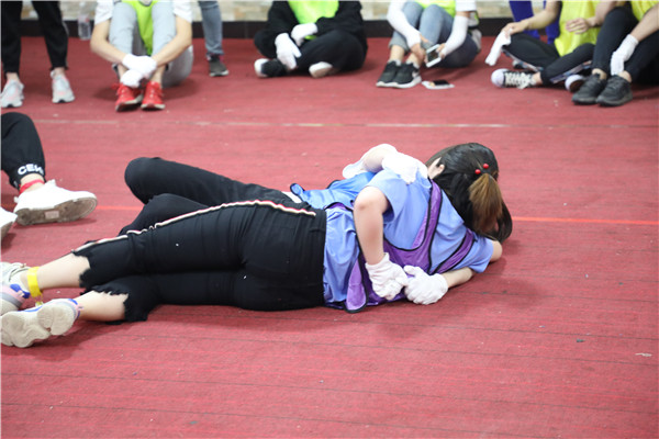 派出6名成員進(jìn)行參賽,將5米的長(zhǎng)“布條”纏到身上,然后迅速跑至對(duì)面隊(duì)友處,在不用手的前提下,將"布條”纏到隊(duì)友身上,以此類(lèi)推,直至最后一名隊(duì)友完成即可,用時(shí)最短隊(duì)伍獲勝。轉(zhuǎn)圈的時(shí)候倒是很忘我,可轉(zhuǎn)完倒地者也比比皆是!