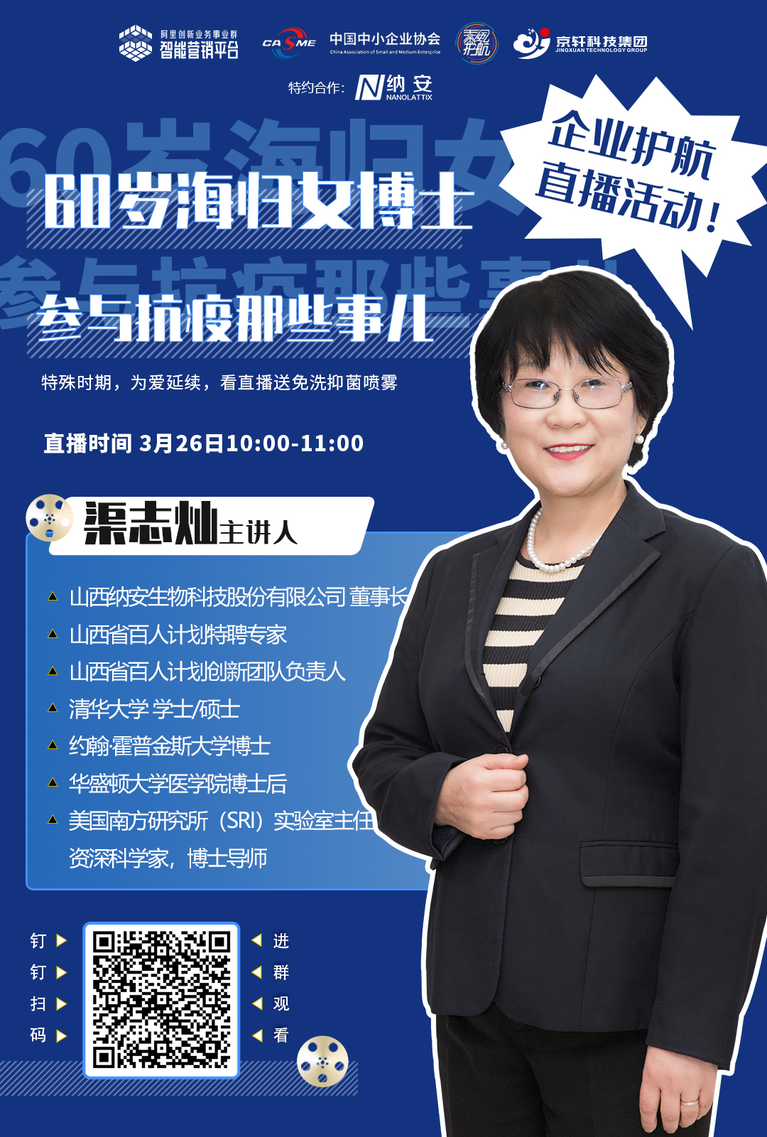 本期企業(yè)護(hù)航公益直播課程特邀美國(guó)生物研究領(lǐng)域博士渠志燦,分享長(zhǎng)期健康管理的方法,在未病防治的大健康框架下,引導(dǎo)全民健康觀念和生活方式。