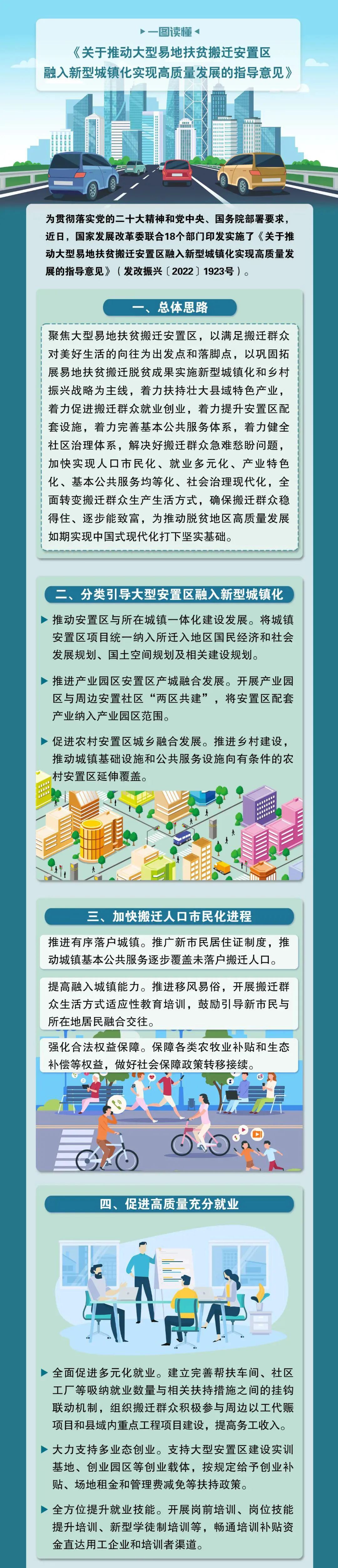 國家發(fā)展改革委等19個(gè)部門近日印發(fā)指導(dǎo)意見,明確了今后一個(gè)時(shí)期推動(dòng)大型易地扶貧搬遷安置區(qū)融入新型城鎮(zhèn)化、實(shí)