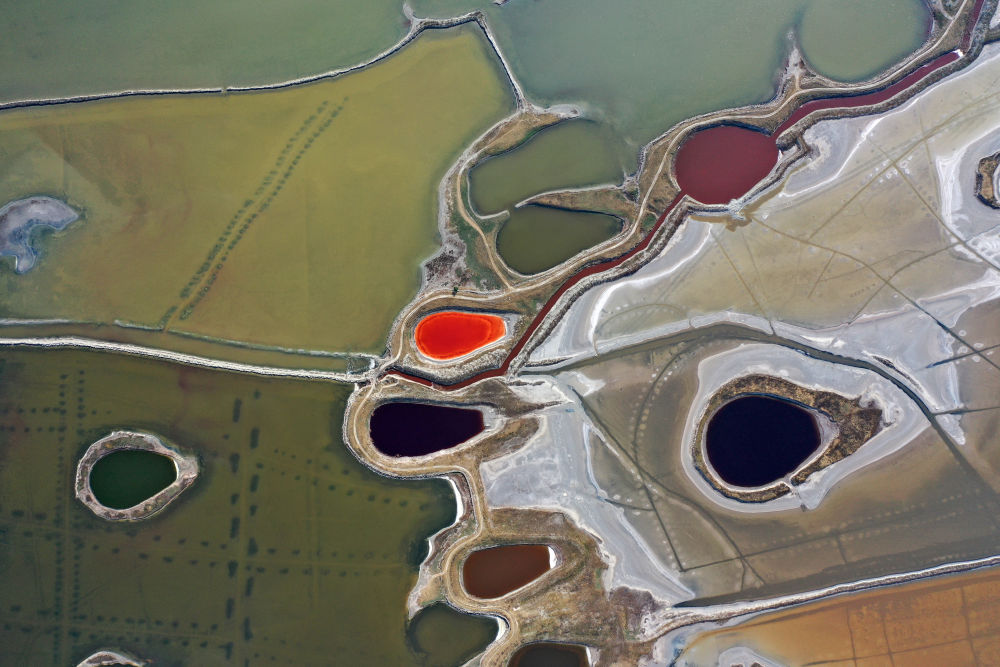 山西運(yùn)城鹽湖一角(2021年6月1日攝,無人機(jī)照片)。