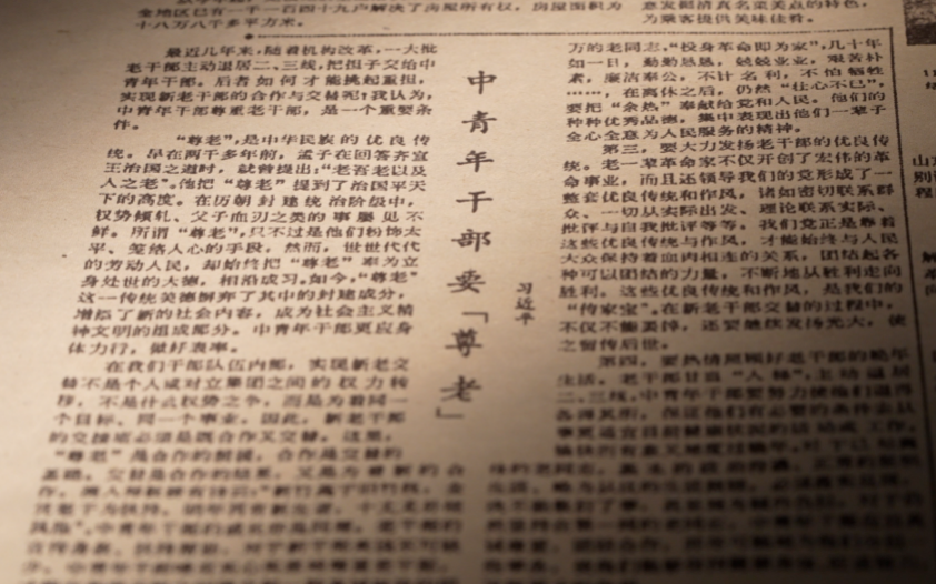 1984年12月7日,《人民日報》第4版上發(fā)表了一篇評論——《中青年干部要“尊老”》,作者是時任河北正定縣委書記習近平。在論述“尊老”傳統(tǒng)美德時,文章引經(jīng)據(jù)典,包括孟子的“老吾老以及人之老”等。全文篇幅不長,卻真實反映了習近平尊老敬老的深情厚意。